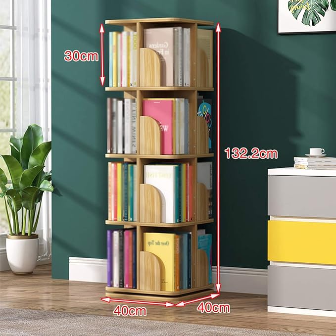 This rotating bookshelf is an ideal choice for students, book enthusiasts, or anyone seeking an efficient and elegant storage solution.