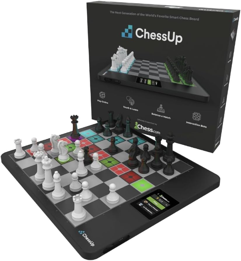 ChessUp 2 is a light-up smart chess board with built-in WiFi, AI engine, TouchSense pieces, lessons, and wireless play through a companion app. Perfect for beginners and advanced players.
